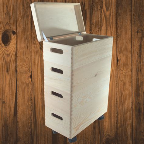 4 Tier Wooden Narrow Stackable Boxes | Kids Toy Shoe Bin Organiser | Top Hinged Lid | Bottom Crate Wheels | Decorative Craft Plain Pine DIY
